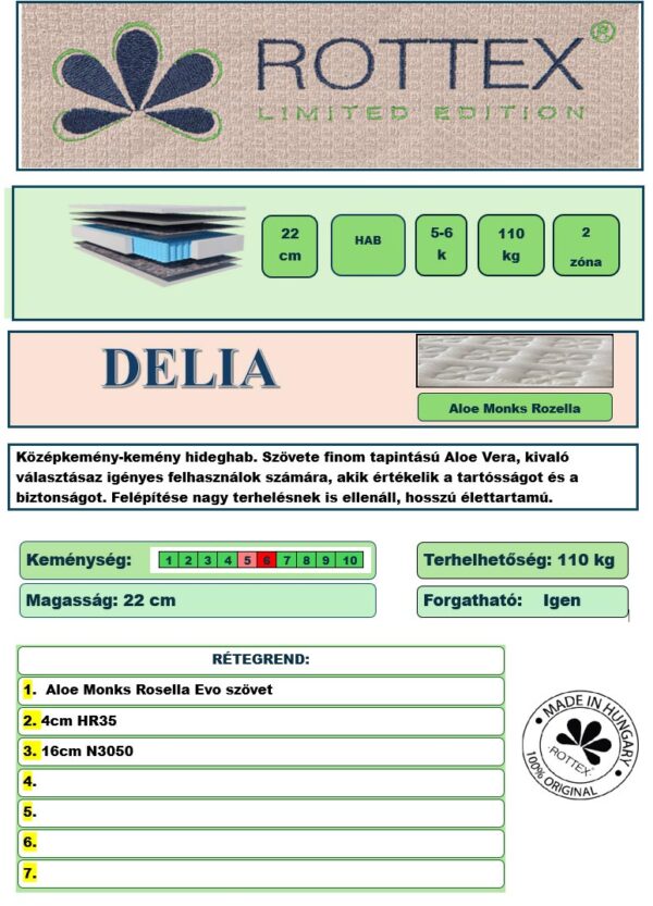 Delia Rottex nagy rugalmaságú N30/H35 hideghab matrac, Magento huzattal.